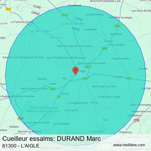 DURAND Marc intervient dans un rayon de 15 km autour de L'AIGLE avec ces 51 villes voisines :