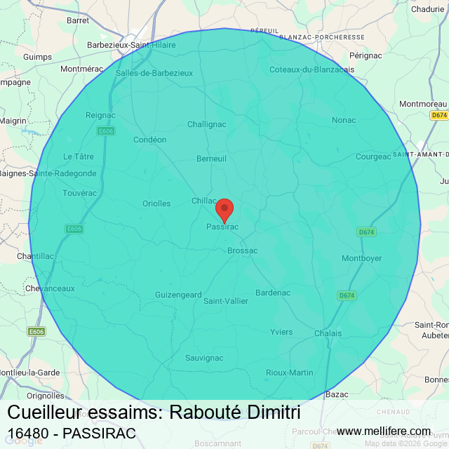 Rabouté Dimitri intervient dans un rayon de 15 km autour de PASSIRAC avec ces 49 villes voisines :
