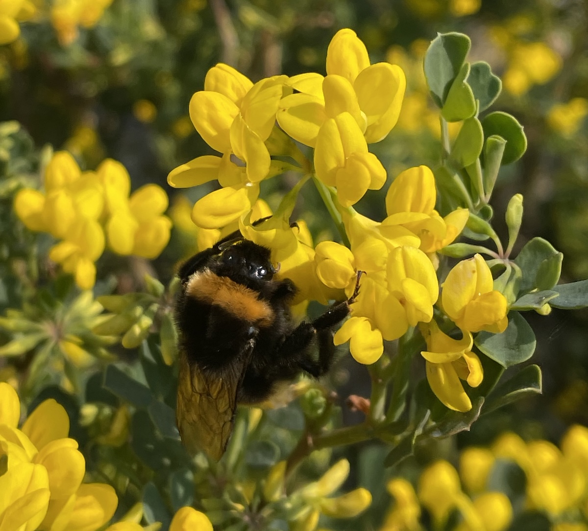 Elle porte au printemps (et parfois dès la fin d’hiver selon le climat) des ombelles de 6 à 12 fleurs papilionacées jaune vif, parfumées, suivies de gousses étroites segmentées.